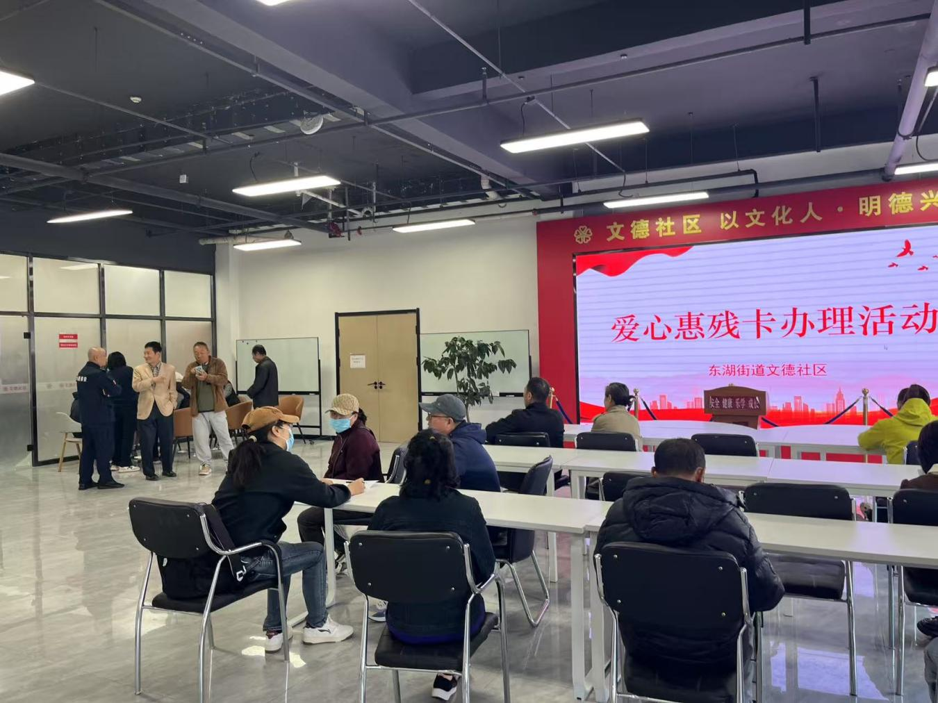 10月16日,东湖街道文德社区联动区残疾人联合会、中国电信股份有限公司沈阳分公司,共同举办“爱心助残,电信惠民”惠残卡办理专场活动,把便捷与实惠送到群众家门口。