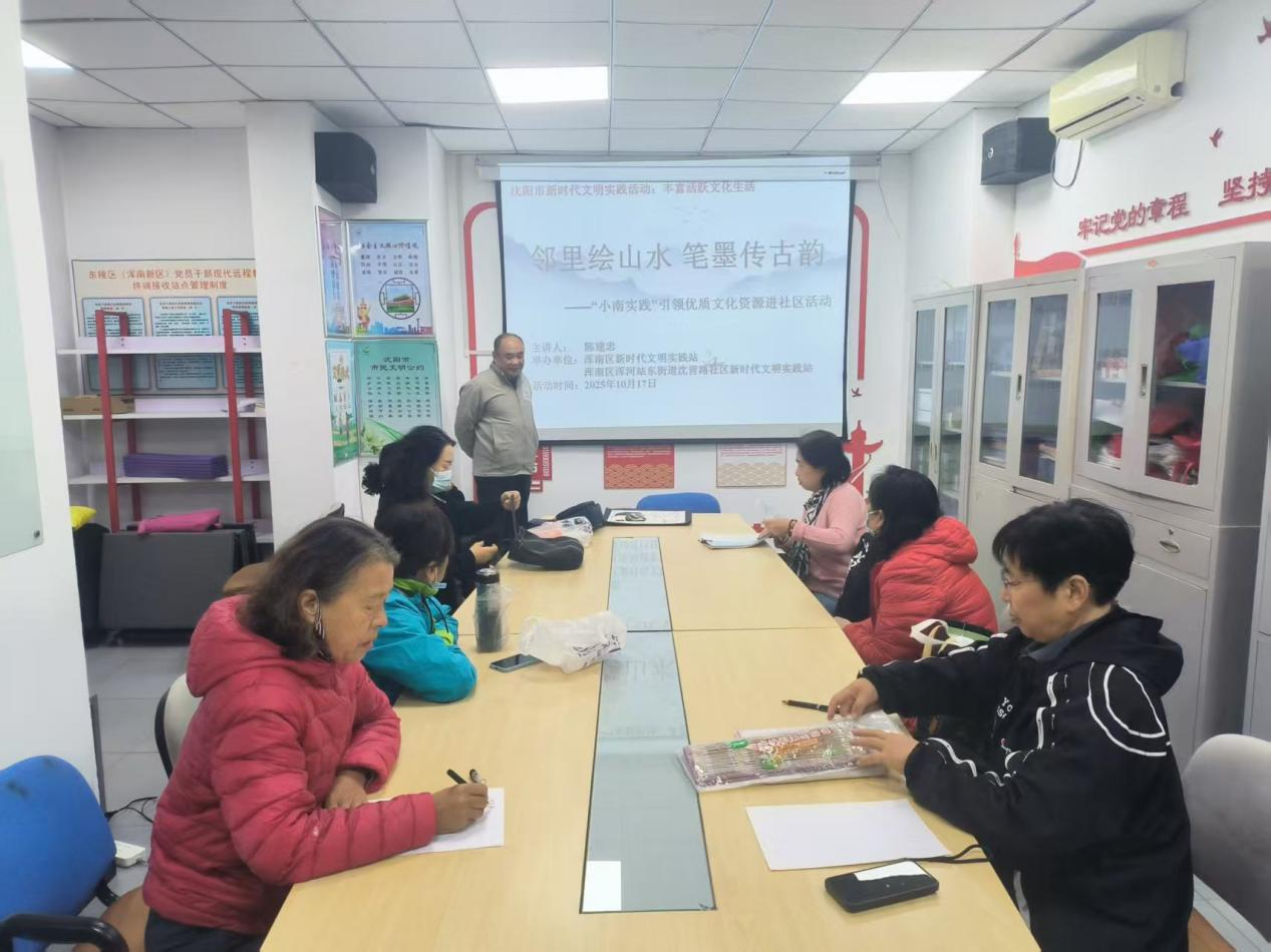 10月17日,浑河站东街道沈营路社区以“小南实践”为牵引,引入优质文化资源,举办“邻里绘山水 笔墨传古韵”山水画幸福教育课堂,吸引众多书画爱好者积极参与,既丰富了居民精神文化生活,也让传统文化在社区落地生根。
