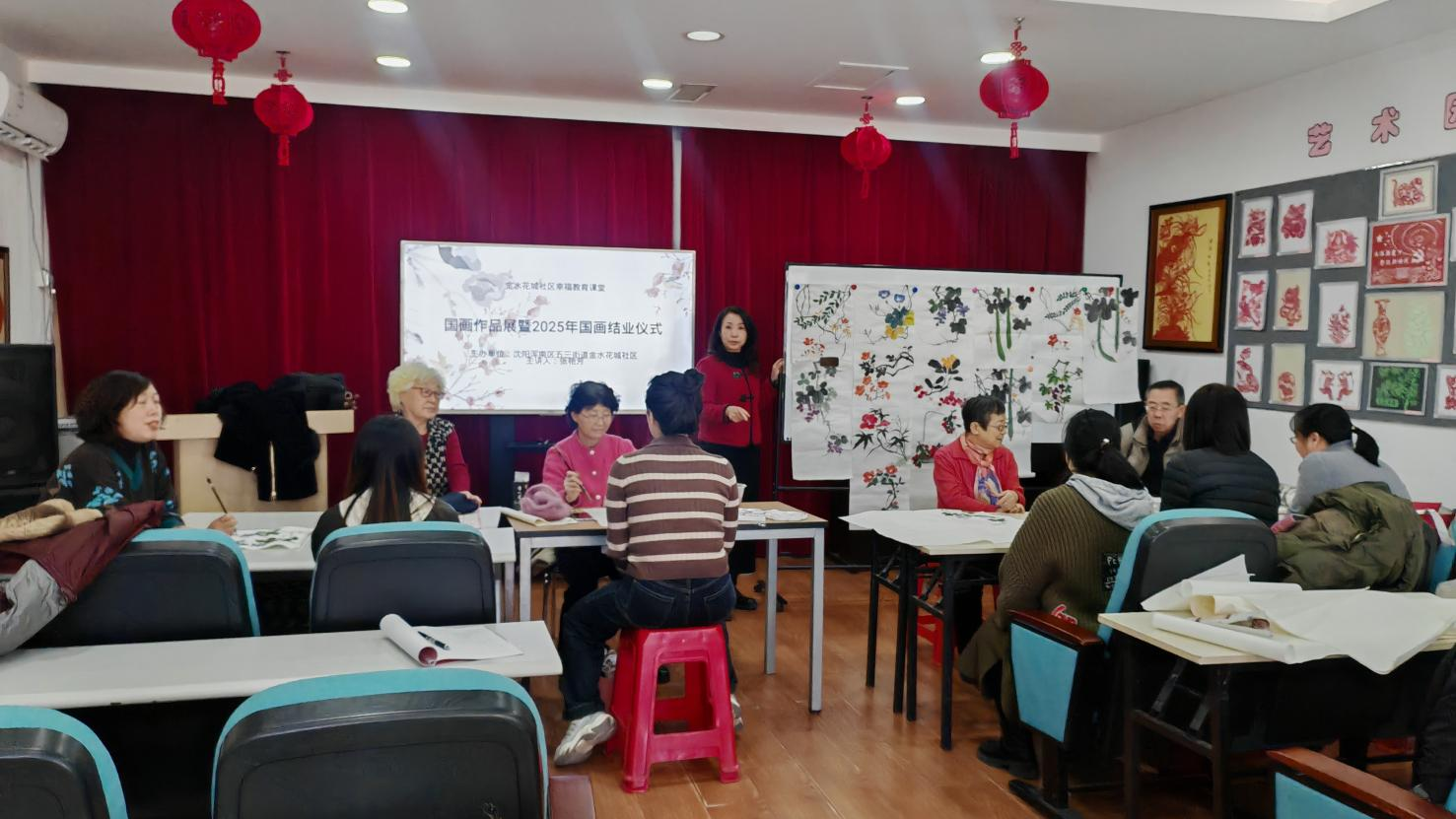 “一开始我还不敢来学,怕自己没基础学不会,没想到老师特别有耐心,手把手地教我,邻居们相处得也特别好,社区工作人员更是处处为我们着想。”结业典礼上,学员代表张阿姨分享起自己的学习经历,笑意满盈。她说如今不仅熟练掌握了国画技法,更常走进社区,与邻里一同唱歌、跳舞、习练八段锦,在她心中,社区早已是温暖相伴的幸福大家庭。
