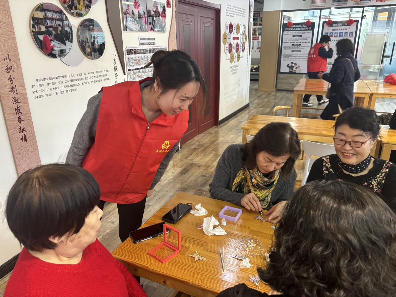 本次活动以非遗文化为载体、志愿服务为纽带,为社区居民搭建起文化交流、邻里互助的温馨平台。活动现场,社区手工志愿者细致讲解螺钿技艺的千年传承脉络与选材、镶嵌、拼接等核心技巧,耐心解答居民疑问,用志愿热忱传递非遗温度;手工制作环节,巾帼志愿者与居民围坐协作,挑选材料、构思设计、拼接螺钿片,邻里间相互帮忙调整细节、交流创意,现场氛围热烈融洽,一件件精致的螺钿发饰、胸针相继成型,每一件作品都凝萃着非遗魅力与邻里温情。这场沉浸式体验,让居民近距离感受传统工艺之美,更以手作为桥,让邻里情谊在交流中升温,志愿互助的共识在协作中凝聚,充分彰显了“文化小南”志愿服务项目的凝聚力与影响力。