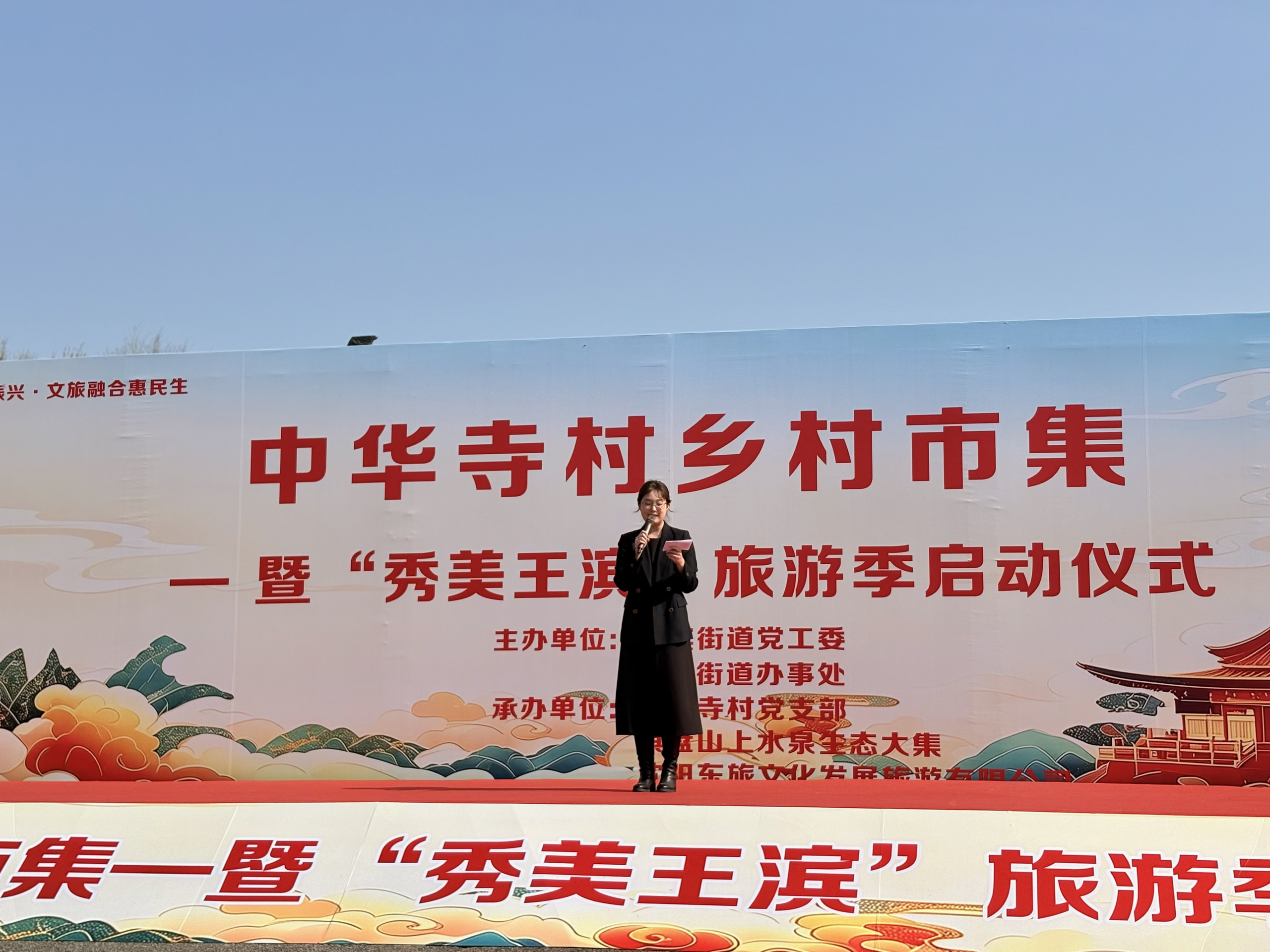 4月25日,王滨街道中华寺村乡村市集——暨“秀美王滨”旅游季启动仪式在中华寺风景区南门广场隆重举行。本次活动通过“党建+文旅+市集”的创新模式,激活文旅资源,丰富消费场景,助力王滨街道经济社会高质量发展。