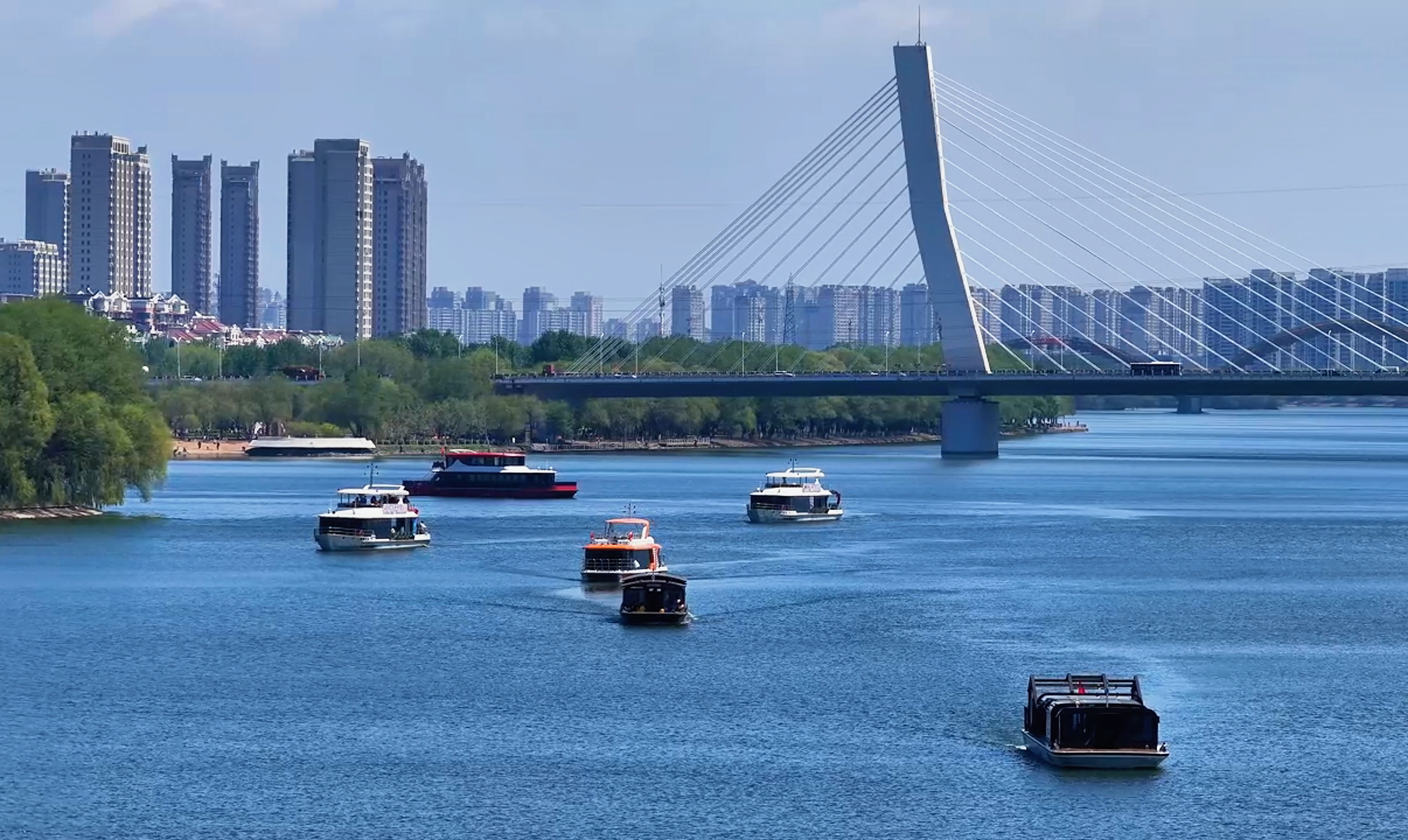 启航啦,浑河航运游船今天启航啦!碧波荡漾,波光粼粼,秀美春日坐上浑河游船,浑河美景尽收眼底,让人大饱眼福、心旷神怡……浑河外滩坐拥浑河核心滨水岸线,生态景致优美、亲水氛围浓郁,集休闲漫步、水上观光、夜景打卡、文体娱乐于一体。依托特色游船体验,这里已成为沈阳辨识度极高的网红打卡地,深受市民与游客青睐。