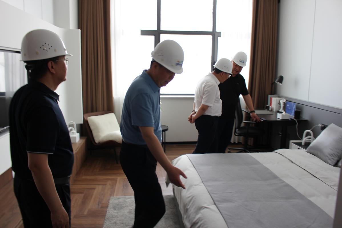 随后,调研组一行前往沈阳浑南科技城。区领导李广杰、金志鑫陪同调研。调研组详细了解了科学家工作坊和人才公寓的建设情况,参观了人才公寓样板间配备的智慧客房控制系统。项目部相关负责人表示,将继续保持高标准的施工质量,加速项目建设,尽早为科研人员、科学家提供生产、生活、生态“三生融合”的研发场所和居住空间,为“产学研用”高质量转化提供高端产业服务。