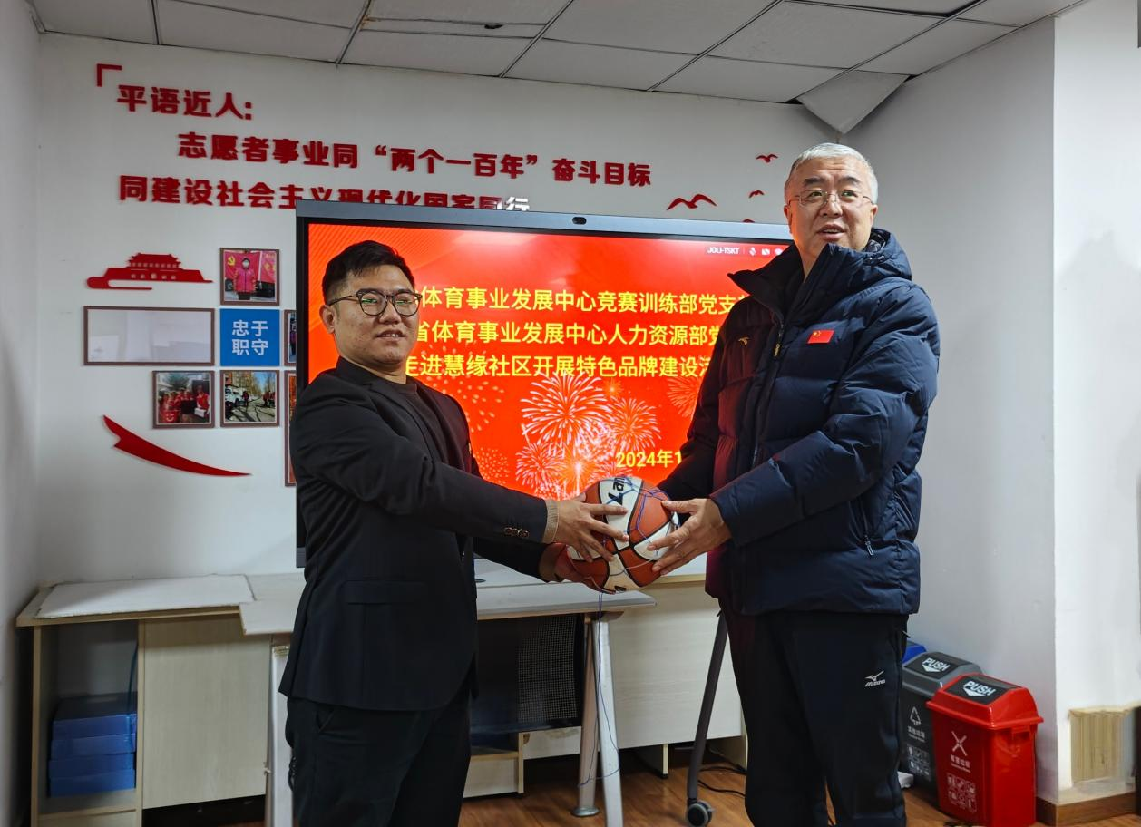 会上,双方就组织开展体育赛事、健康讲座、亲子活动等项目进行了沟通,探讨了党建工作的开展模式、思路以及如何更好地服务居民,分享了党组织建设、党员管理的宝贵经验,进一步增进了双方的了解,为实现“资源整合、优势互补、共同提高”的党建工作格局添砖加瓦。除此之外,辽宁省体育事业发展中心还向慧缘社区赠送了女子篮球,以实际行动为社区体育活动的开展提供了有力支持。
