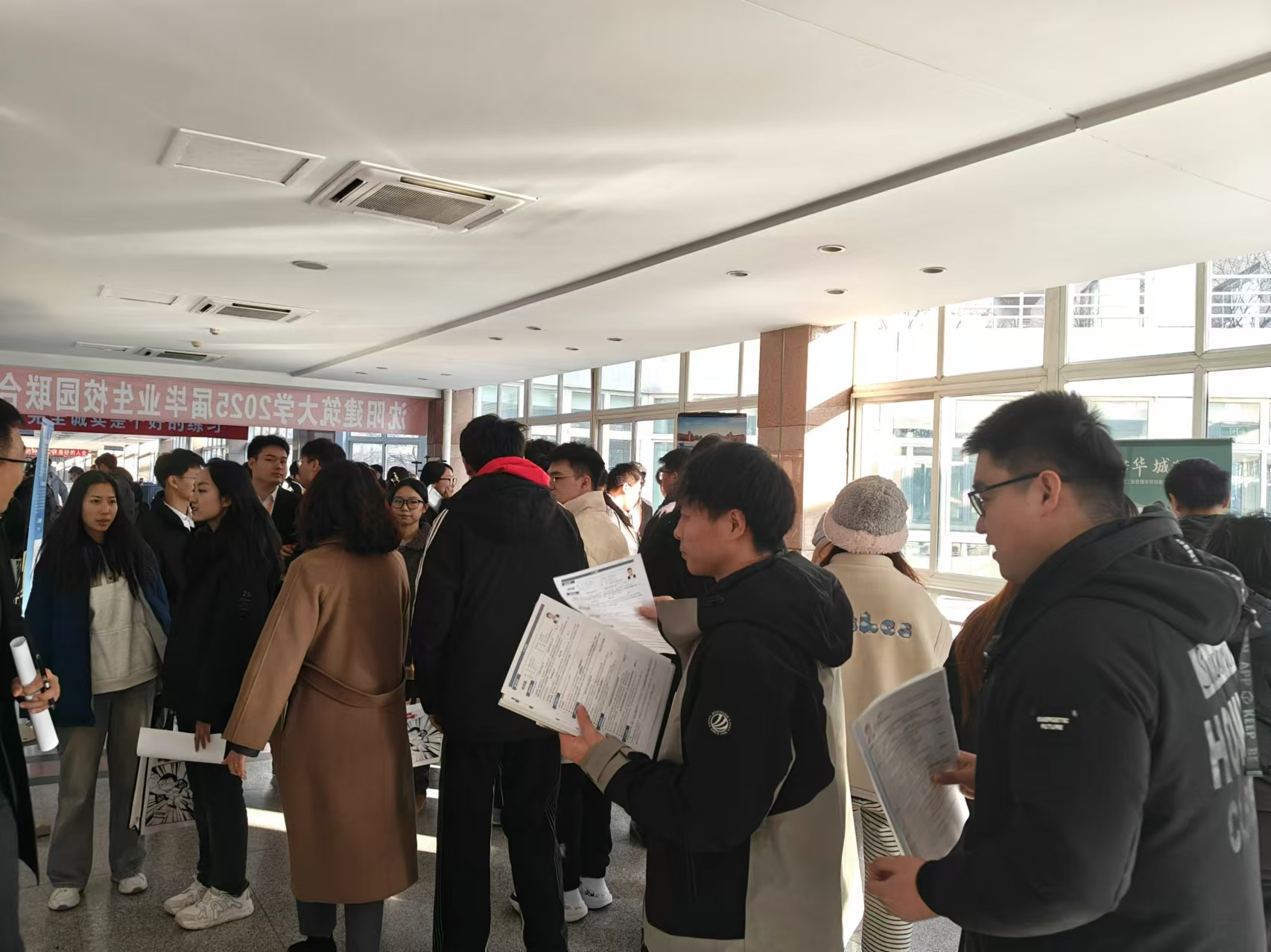 活动中,58家企业齐聚校园,带来了大量与建筑、机械、信息技术等专业相关的实习与就业岗位1400余个,吸引1000余名高校毕业生入场求职。学生们穿梭于各企业展位之间,积极投递简历,与招聘人员深入交流,现场气氛热烈且有序。企业代表们对沈阳建筑大学学生的专业素养和积极态度表示认可,并期待通过此次活动吸纳更多优秀人才来企就业。