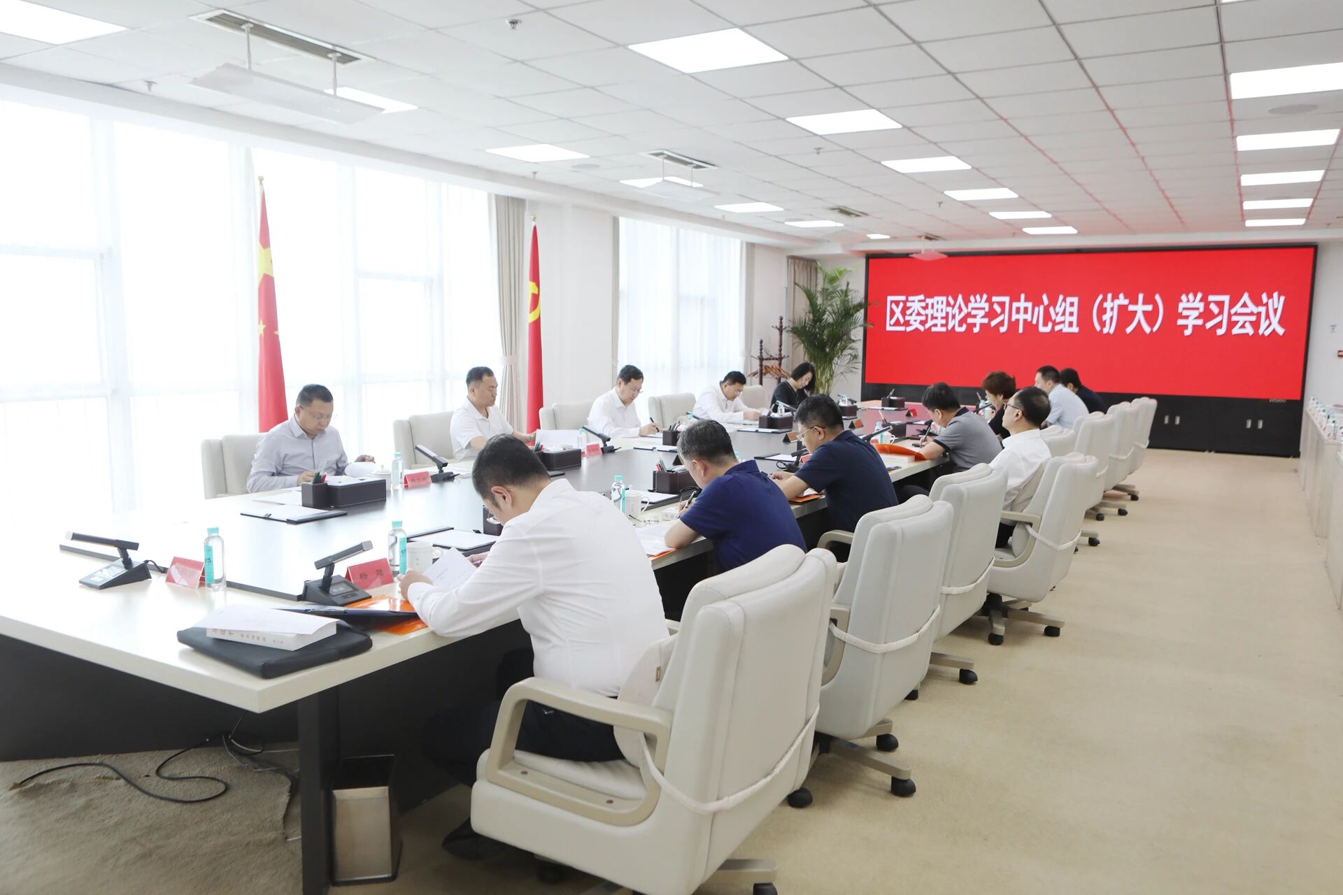 9月28日,区委理论学习中心组(扩大)学习会议召开,深入学习《习近平谈治国理政》第五卷,原原本本研读关于中国式现代化、新质生产力、人类命运共同体、党的自我革命等重要论述,深刻领会贯穿其中的马克思主义立场、观点、方法,全面掌握习近平新时代中国特色社会主义思想的科学体系、精髓要义和实践要求,切实把学习成效转化为坚定拥护“两个确立”、坚决做到“两个维护”的政治自觉,转化为破解高质量发展难题、增进民生福祉的实践动能,把握历史主动、凝聚奋进力量,奋力谱写中国式现代化浑南篇章。市委常委、浑南区委书记、沈阳高新区党工委书记闫占峰主持并讲话。区委副书记、区政府区长、沈阳高新区管委会主任任立辉,区人大常委会党组书记岳茂新,区政协主席刘凤楠出席。