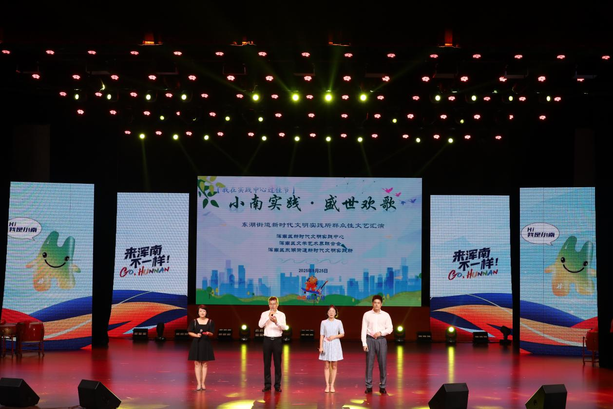 近日,浑南区“小南实践”特色文明实践品牌之文明实践月系列活动——“小南实践·盛世欢歌”东湖街道“迎国庆”群众性文艺汇演活动在区新时代文明实践中心精彩上演。街道居民齐聚一堂,以歌抒怀、以舞献礼,用一场精彩纷呈的文化盛宴,礼赞伟大祖国,展现新时代社区居民的精神风采,让新时代文明实践的新风尚与国庆的喜庆氛围在欢声笑语中交融传递。