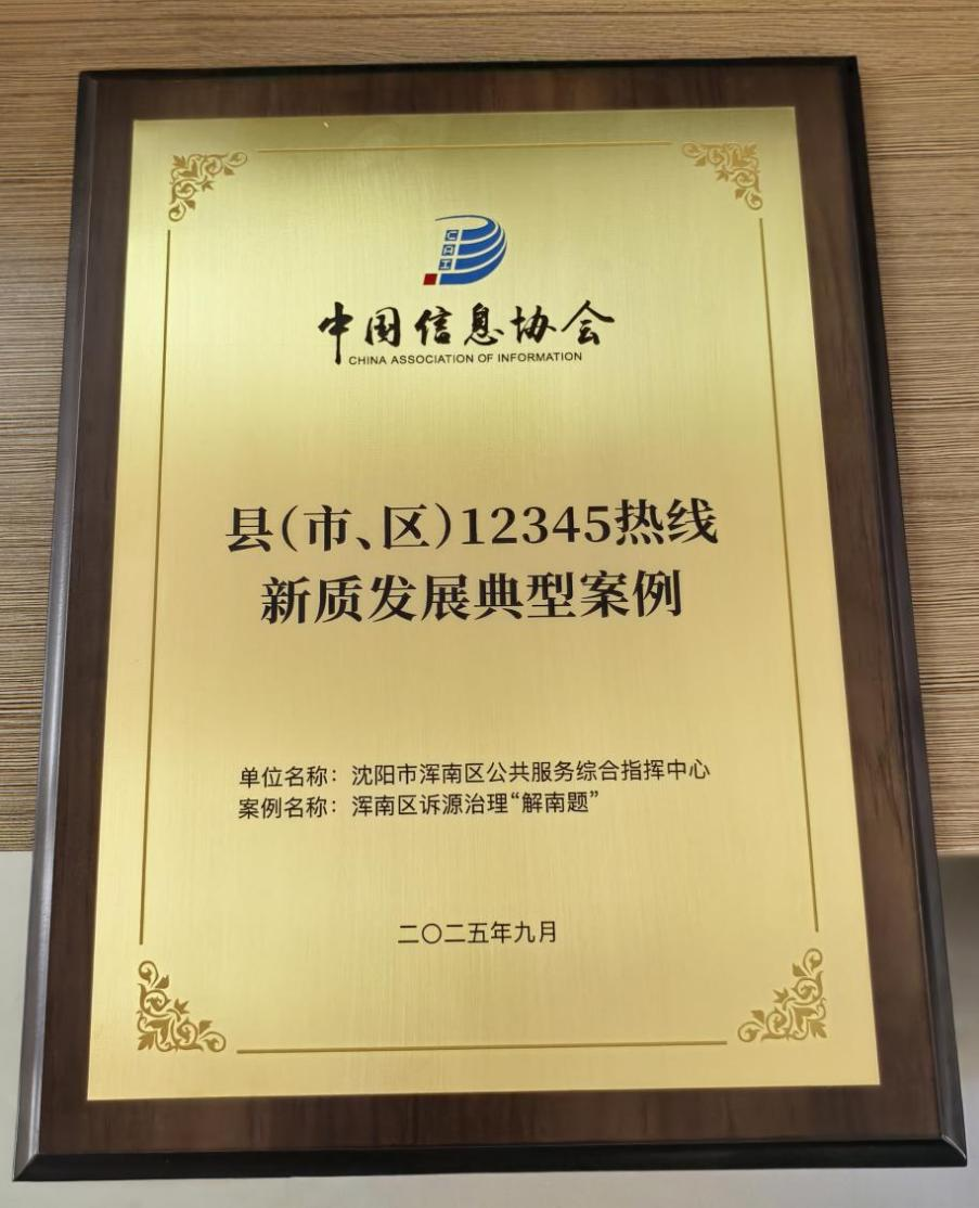 全国首届县(市、区)12345热线发展大会近日在山东省烟台市隆重召开。经大会组委会严格评审,浑南区公共服务综合指挥中心申报的《浑南区诉源治理“解南题”》案例,在全国500余家参评单位中脱颖而出,成功获评“县(市、区)12345热线新质发展典型案例”,为区域政务服务热线高质量发展再添国家级荣誉。