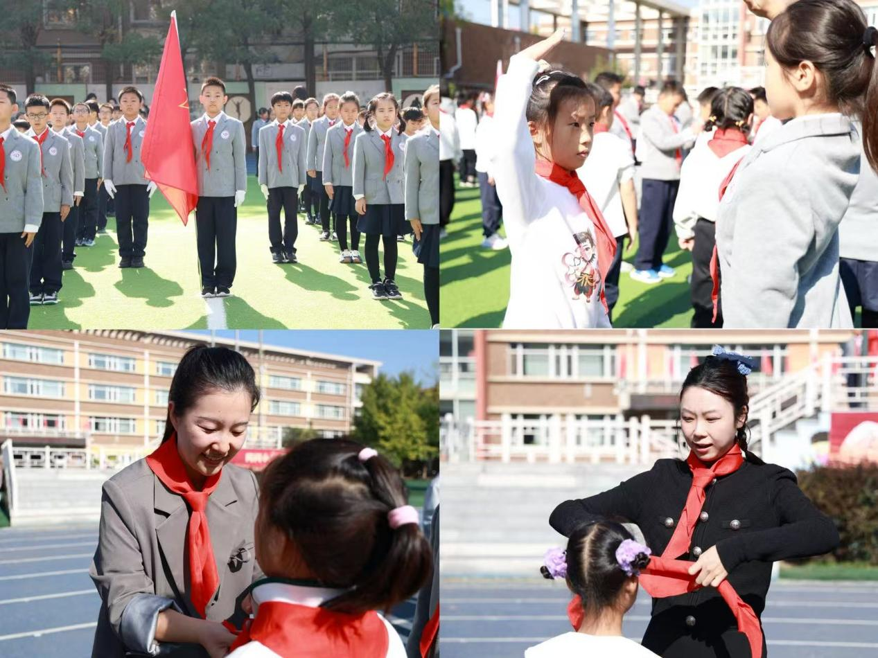 仪式开始前,各预备中队围绕“献礼建队日 追梦红领巾”主题,扎实开展新队员专题培训,为入队仪式筑牢思想基础。一年级课堂上,辅导员生动讲述少先队发展历程,预备队员们高举小拳头,高声喊出“我要入队”的心愿,眼神里满是向往;四年级大队委主动化身“小老师”,走进二年级教室,用亲切易懂的语言讲解队组织的光荣历史与责任使命,让红色种子在预备队员心中萌芽,切实增强他们加入少先队的光荣感与自豪感。