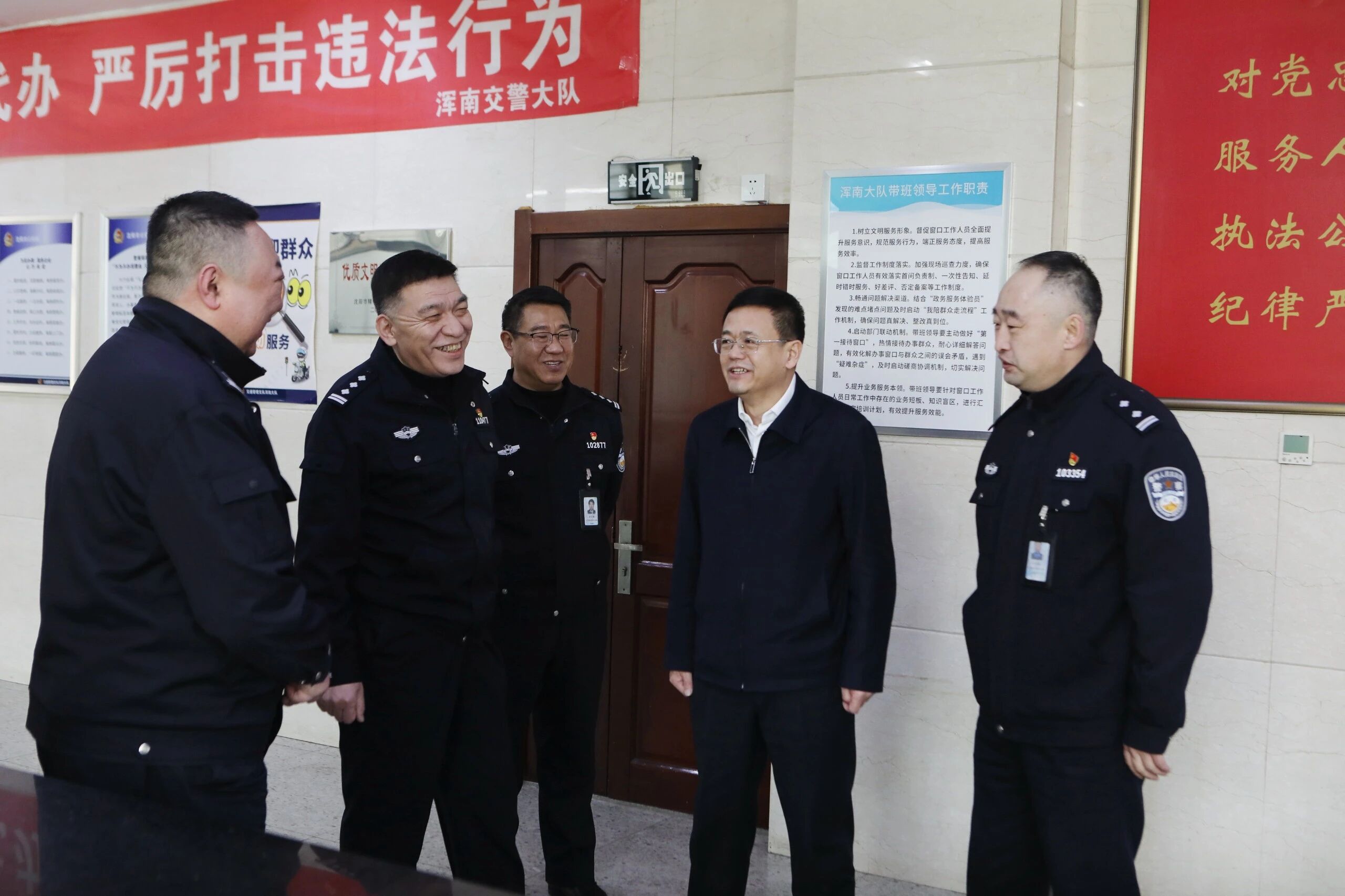 任立辉来到市公安局交通管理支队浑南大队,深入服务大厅和指挥中心,详细询问春节期间勤务部署和路面秩序管控等工作情况。他叮嘱大家要注意防寒保暖、做好安全防护,确保人民群众度过一个欢乐祥和的春节,为营造安全、有序、畅通的道路交通环境保驾护航。