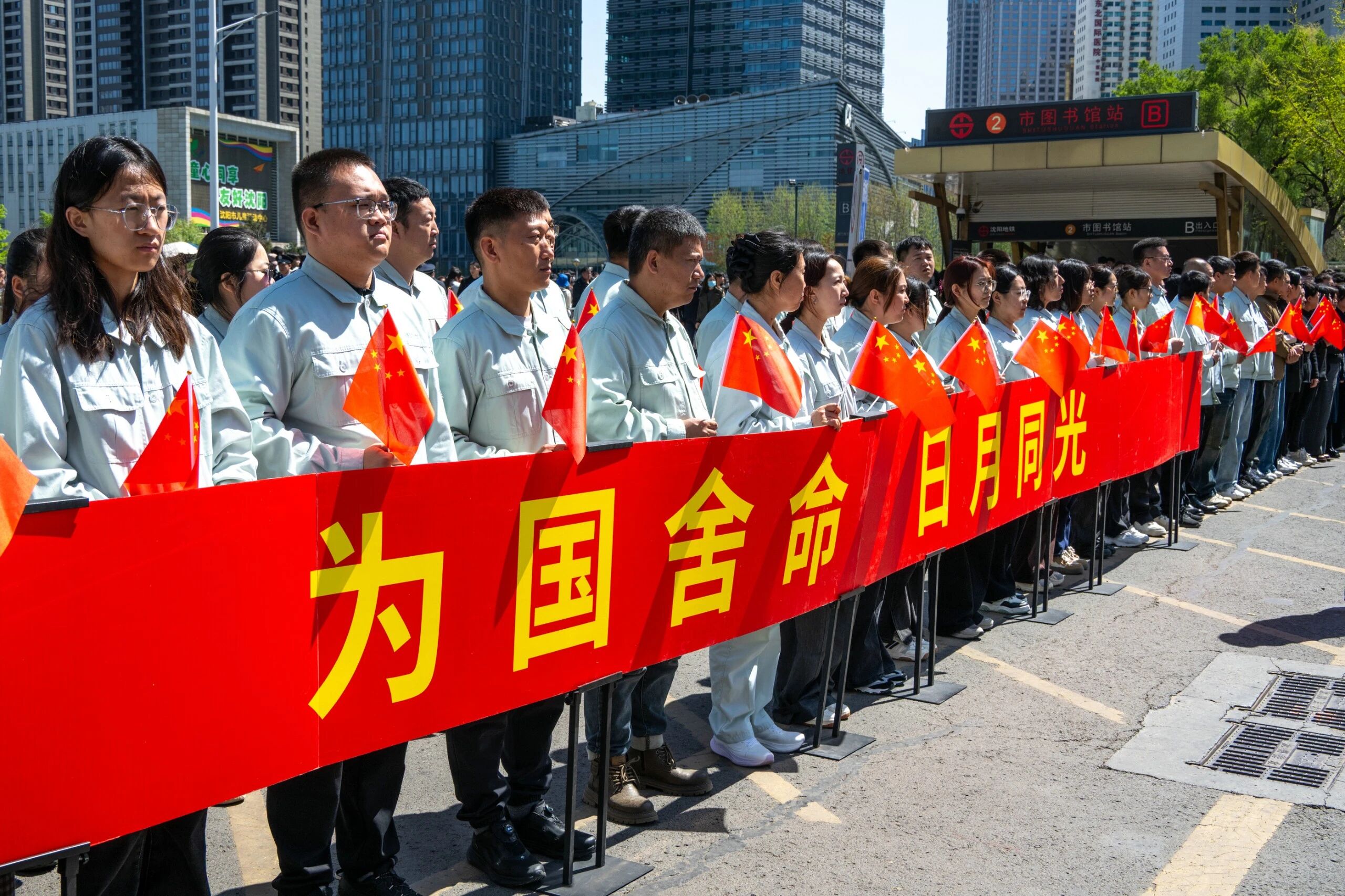 浑南辖区四处致礼沿线点位气氛肃穆庄重。空港三街沿线,辖区机关干部、沈阳边检站干警自发驻足列队静静凝望;机场宾馆周边路段,广大社区居民群众齐聚沿路肃立;青年大街高速出入口匝道旁,来自沈阳建筑大学、中国科学技术大学的高校青年师生集结在此,迎接先烈们的回归;市科学宫路口点位,新松机器人股份有限公司两百余名在岗员工联合兴齐眼药、国际软件园、中建八局、蓝谷科技文化园一众辖区科创企业的员工们垂首默哀,迎接先烈回家。