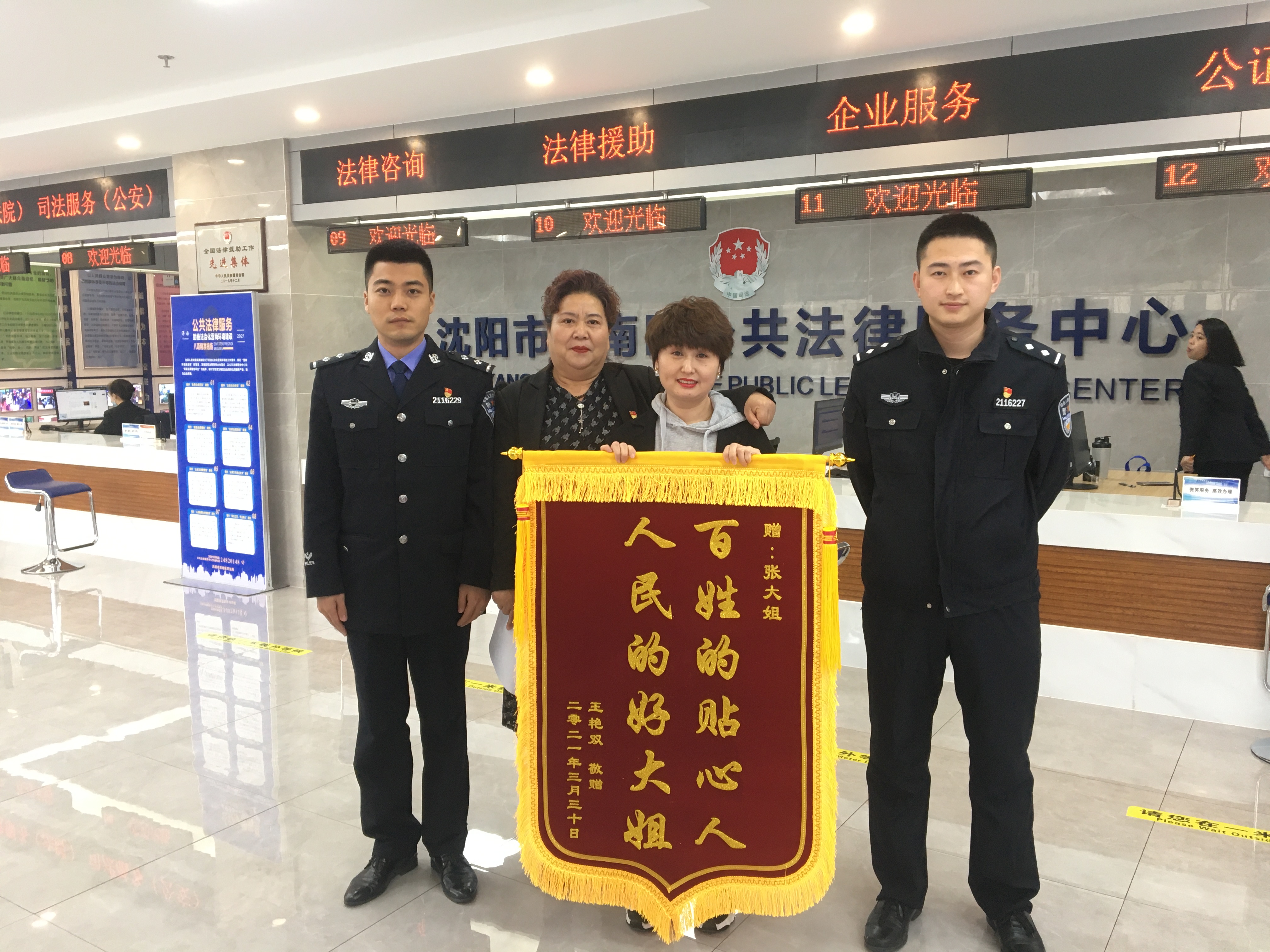 2021年6月10日,7名农民因工程拖欠劳务费追索无果,来到浑南区公共法律服务中心寻求帮助。其中农民高某表示,如果无法尽快追索这笔钱,将采取极端方式讨薪……一场拖欠农民劳务费的纠纷,随时可能升级。张艳美知悉后立即行动,积极帮助农民兄弟稳情绪、想办法、查根源。即使面对承包方赖账、开发商信息不详等“断头路”,张艳美依然没有放弃,她反复核实、查询网络,组织双方进行3次会谈、十几次电话和视频沟通,仅用两天时间,成功解决了12.11万元劳务费拖欠问题。事后,一面“为人民办实事、做群众贴心人”的锦旗在农民兄弟真心感谢下送至张艳美手中。