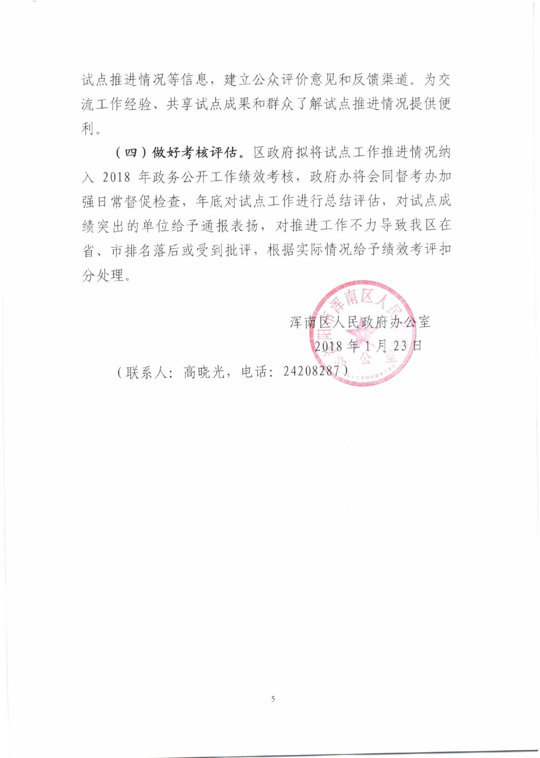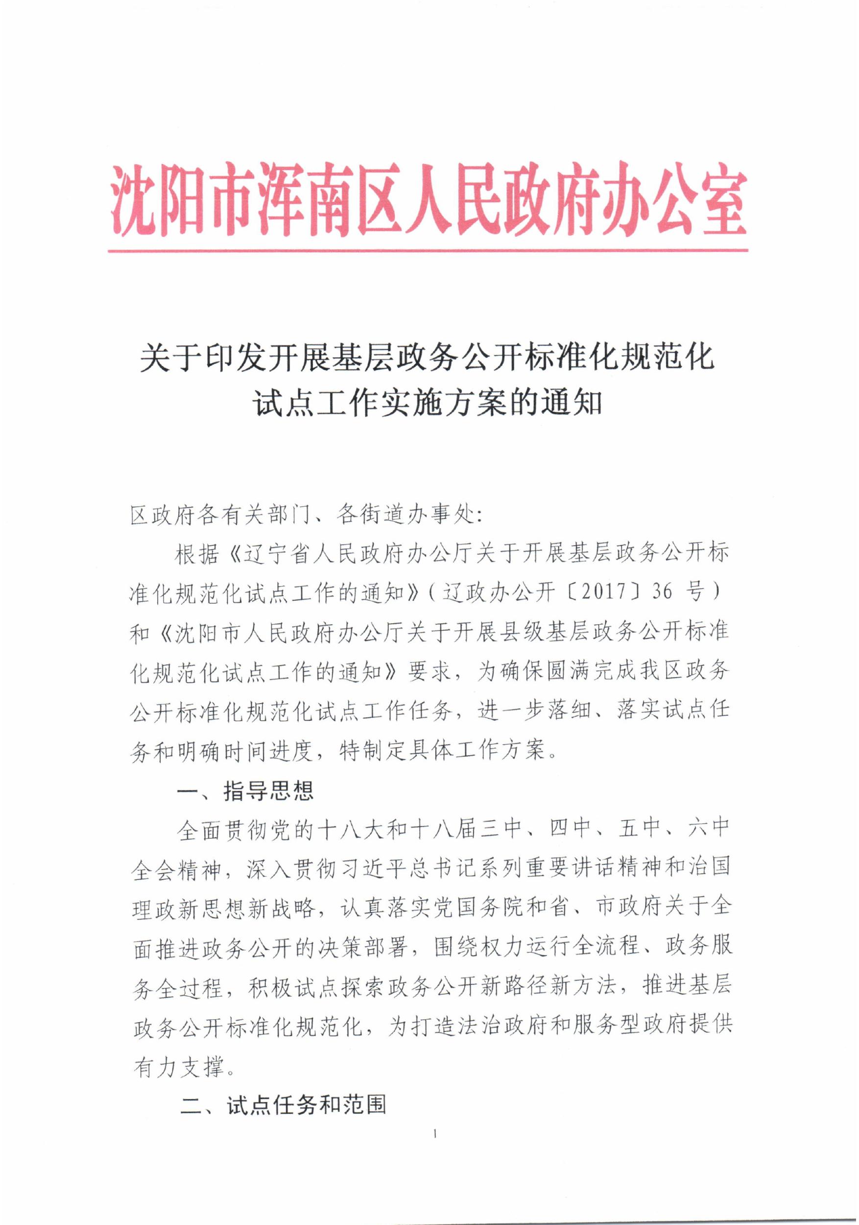 浑南区政府办公室 关于印发开展基层政务公开标准化规范化试点工作实施方案的通知