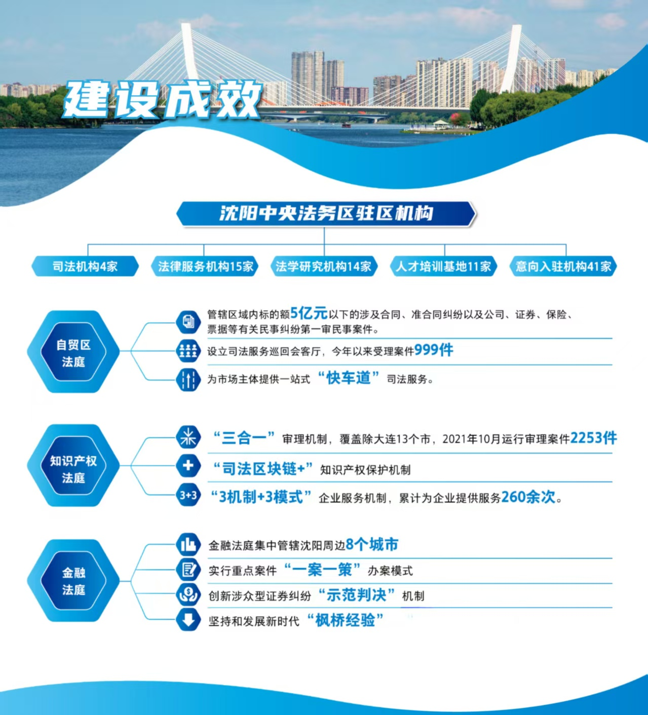 沈阳中央法务区,正以先进的工作机制,完善的产业政策,充足的资金保障为基础,围绕优化法治化营商环境、促进现代服务业健康发展,沈阳中央法务区现如今共有45家机构成功入驻。