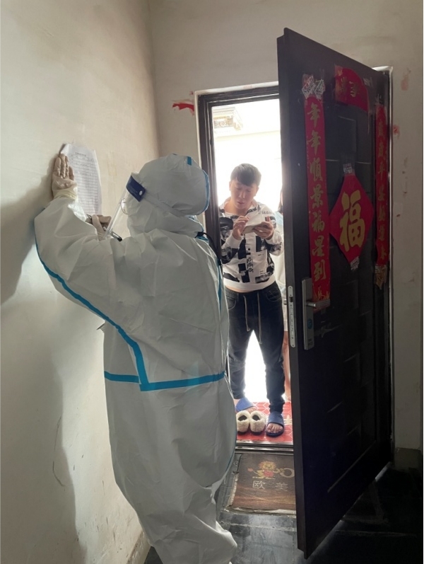 在疫情防控工作中,志愿者们除了现场参与核酸检测外,同时与医务人员深入到行动不便的居民家中,进行入户核酸检测。协助社区开展 “扫楼”行动,劝导居民积极进行核酸检测,确保不漏一人。他们穿着防护服,一层一层的走楼梯满身是汗,却从未停歇。