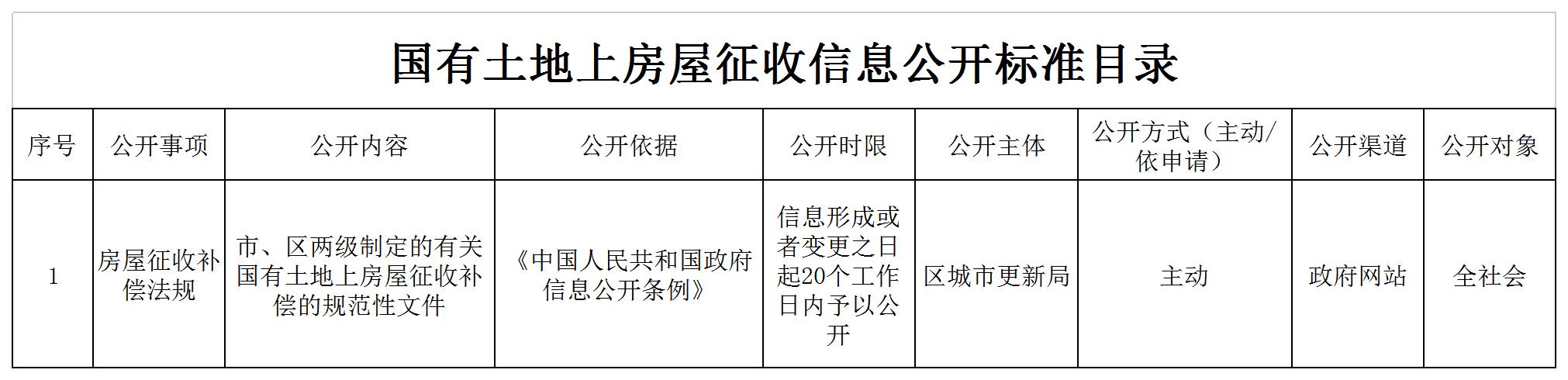 国有土地上房屋征收信息公开标准目录