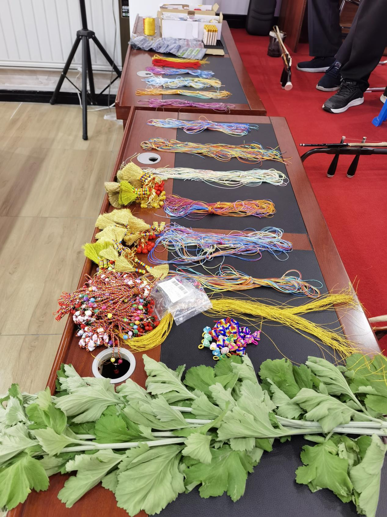 文化汇演结束后,开始编织五彩绳。五彩绳作为端午节的传统习俗之一,象征着吉祥如意、避邪驱灾。在活动现场,工作人员早已准备好了五彩丝线、小珠子等材料,并耐心地向村民们传授编织技巧。村民们热情高涨,纷纷动手尝试,一根根五彩斑斓的五彩绳在他们的手中逐渐成形。活动现场欢声笑语不断,五彩绳成为了连接村民情感的纽带。不少村民表示,通过这样的活动,他们不仅学习到了编织五彩绳的技巧,更深刻体会到了端午节传统文化的魅力。