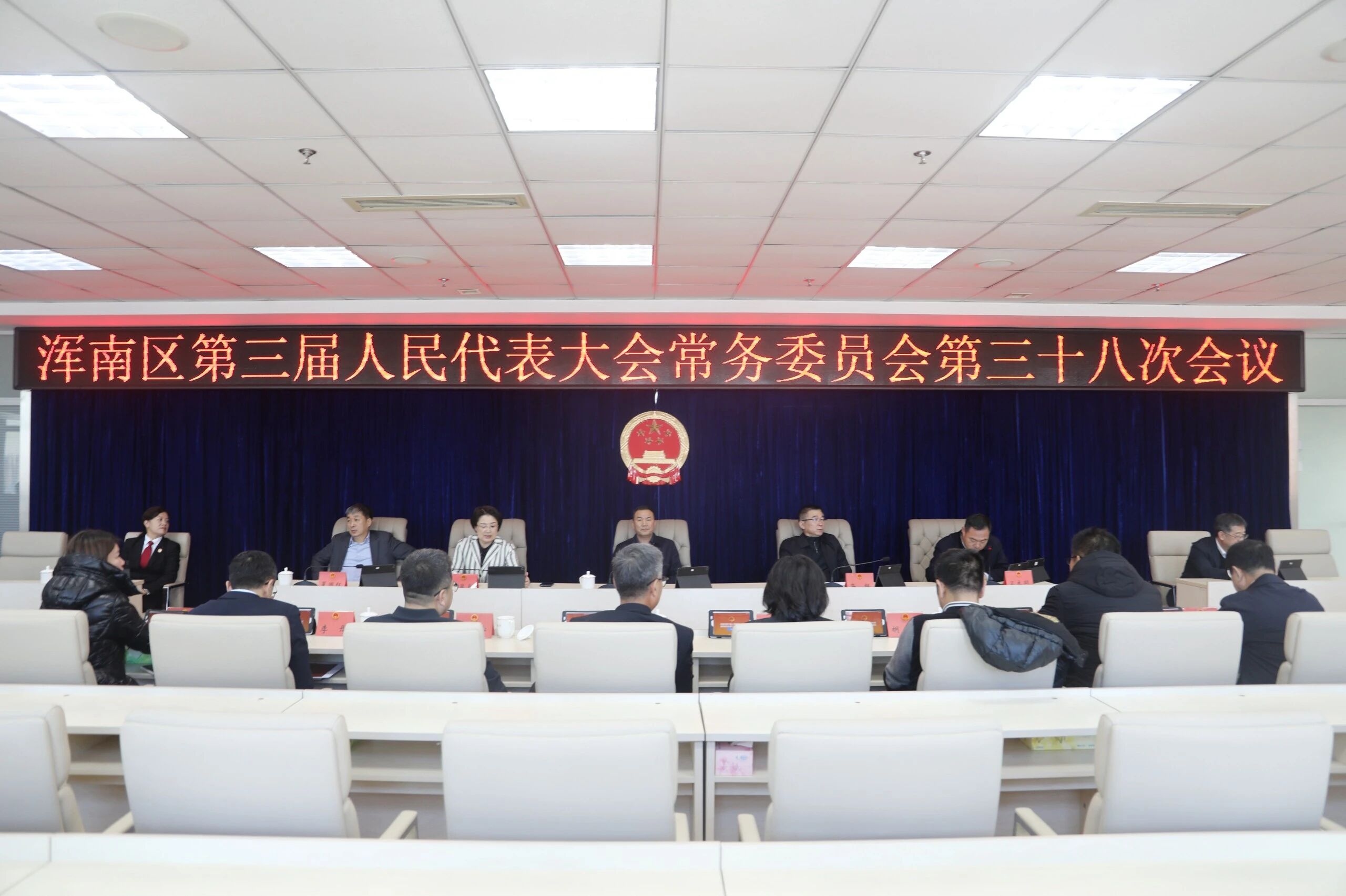 12月26日,区三届人大常委会召开第三十八次会议。区人大常委会党组书记岳茂新列席会议,区人大常委会副主任栾枫、宋崴嵬、卫大同、夏国红参加会议,区政府、区法院、区检察院相关领导列席会议。