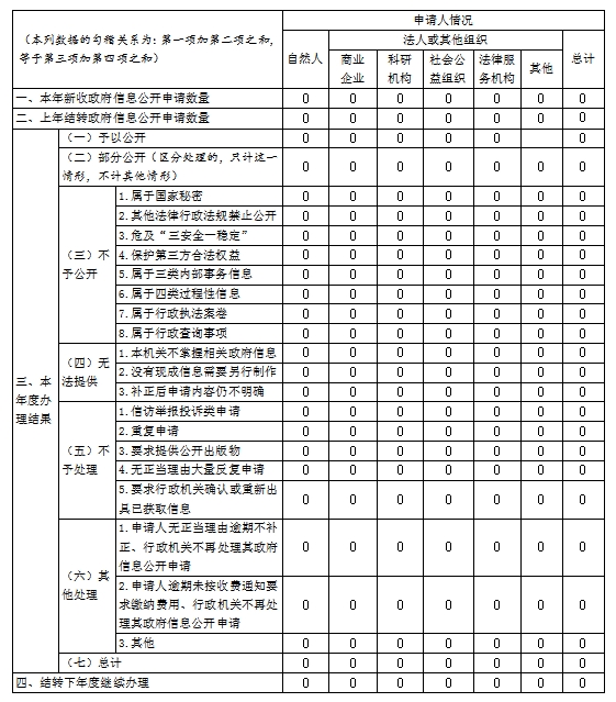 按照规定程序开展依申请公开工作,规范了工作流程,明确了依申请受理各环节的具体要求。全年本部门依申请公开事项0项。