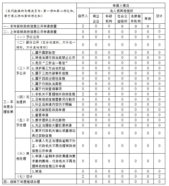 本年度受理依申请公开件2件,未收到公众申请要求公开的其他方面政府信息。