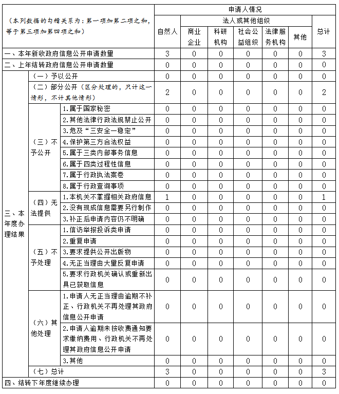 三、收到和处理政府信息公开申请情况