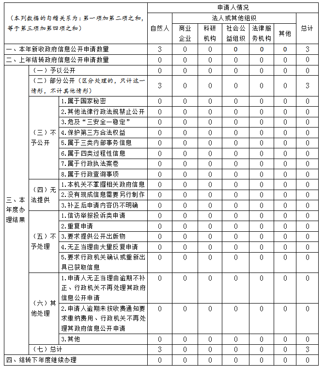 三、收到和处理政府信息公开申请情况