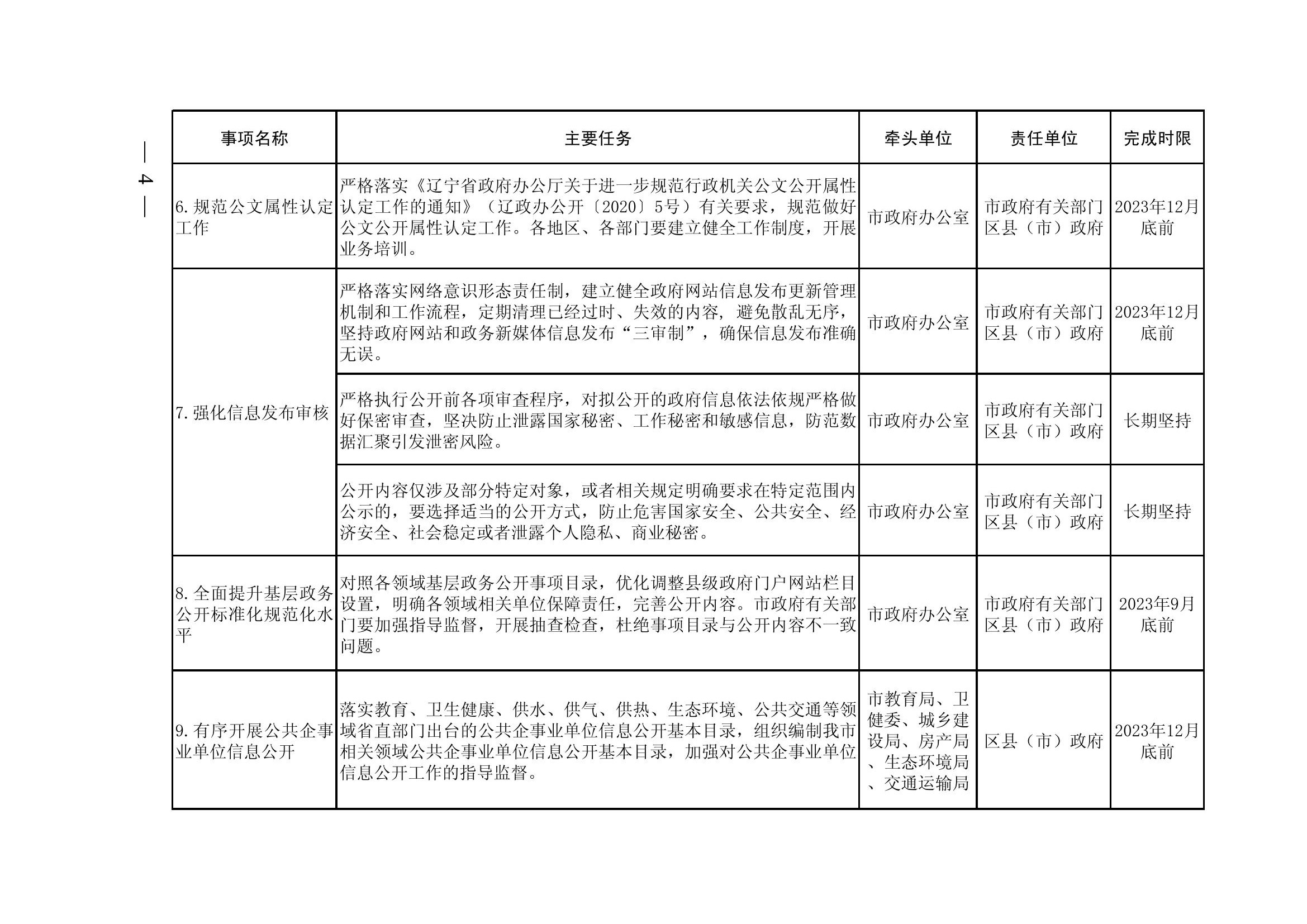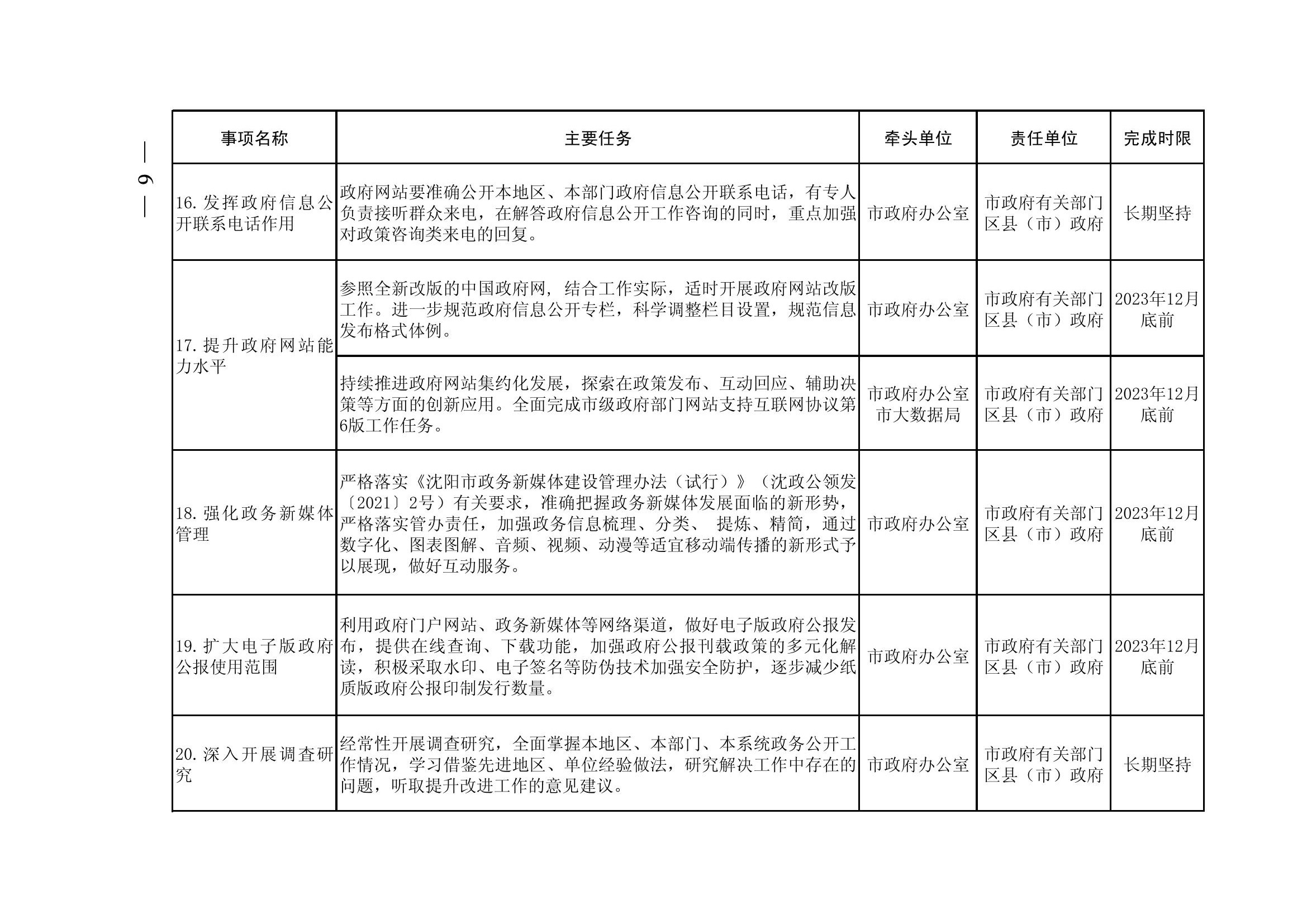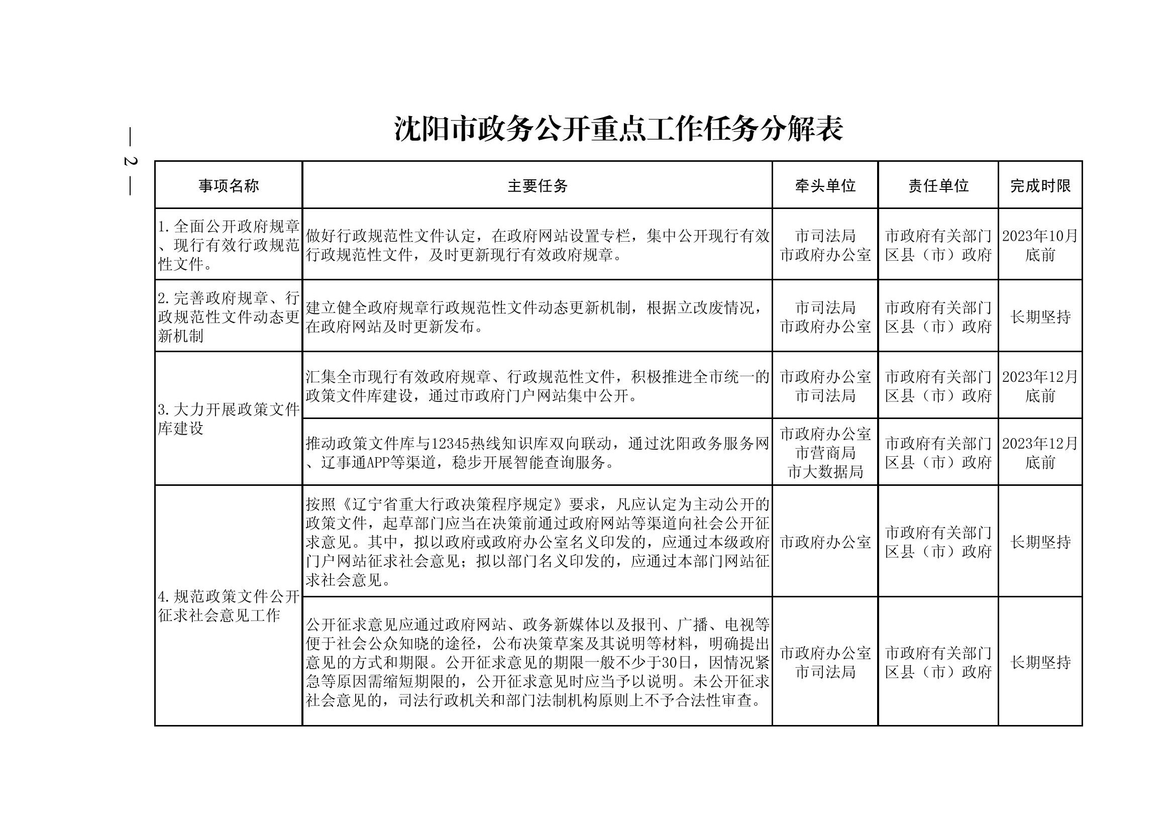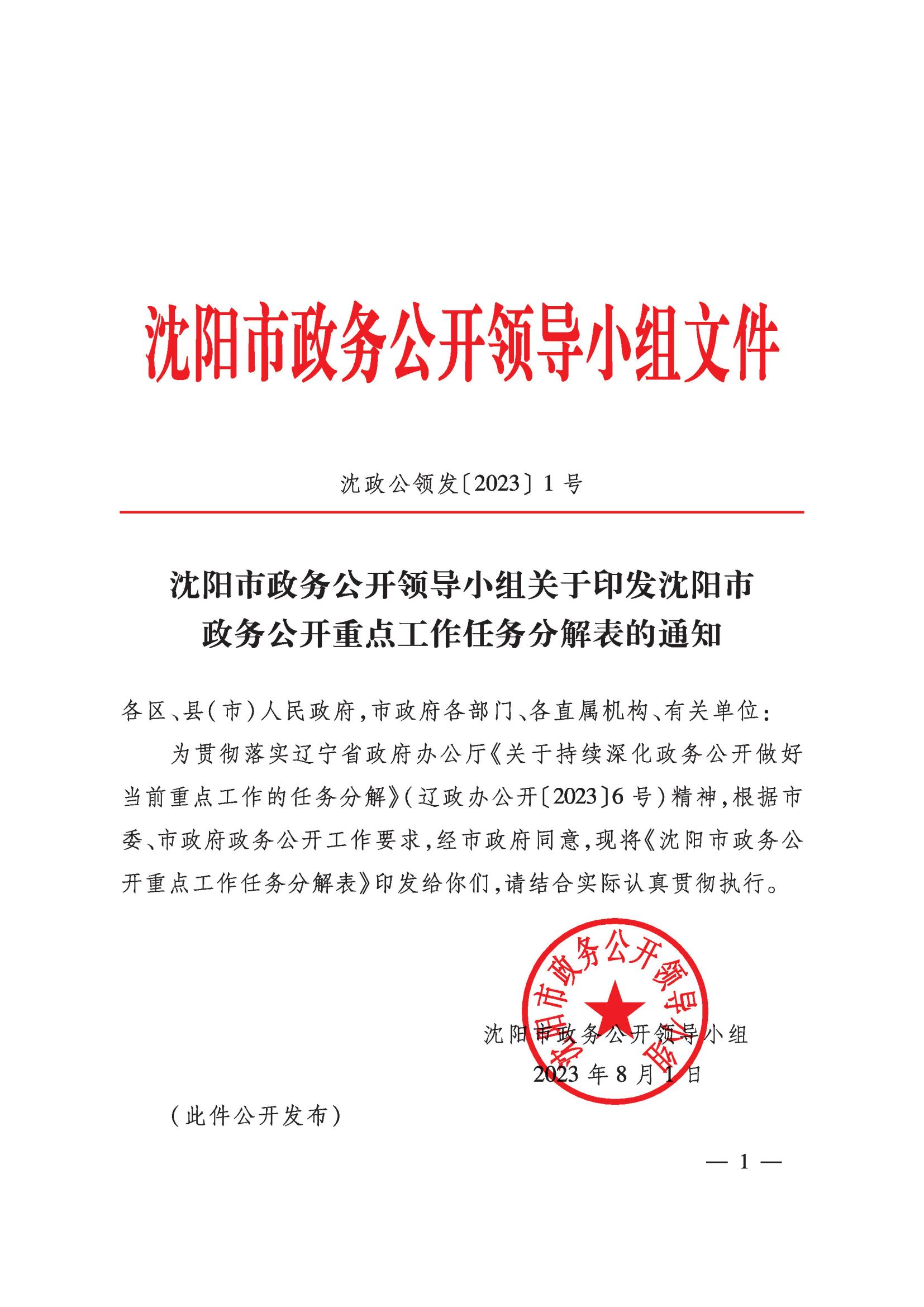 沈阳市政务公开领导小组关于印发沈阳市政务公开重点工作任务分解表的通知